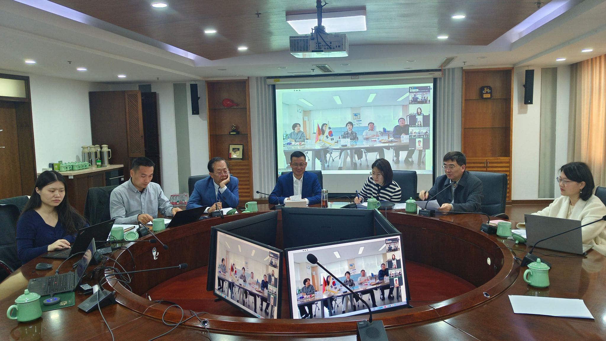 韩方会议代表团由国际交流教育本部长徐康锡领衔,成员包括国际交流教育本部国际交流主任朴美凖、全球茶文化产业学系教授兼学科长千池妍教授、全球茶文化产业学系教授吴任京、研究生院院长郑东补以及研究员李彩允等。