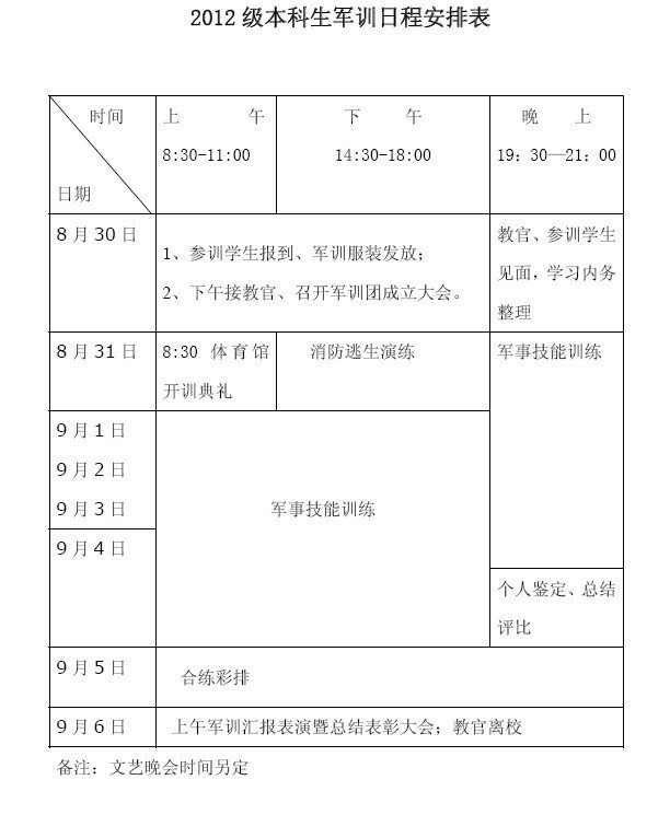 浙江树人大学2012级本科学生军训工作实施方案