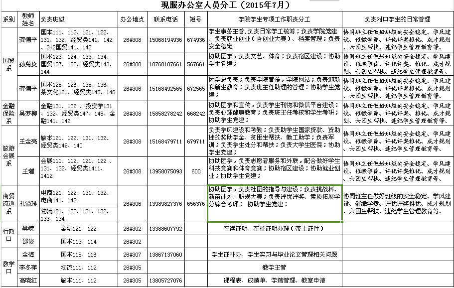 现服院办老师分工